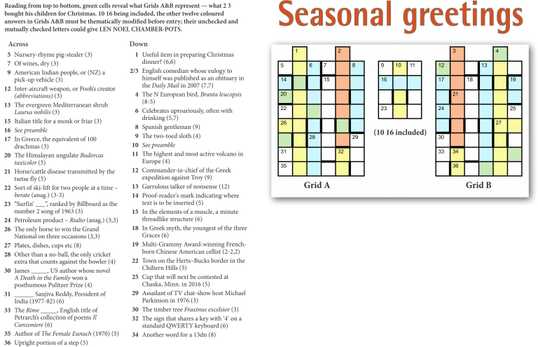 The last one in for me was 2 down. I could only see ENDS or ANUS as possible solutions but couldn’t (p)arse them. To my shame I elected for ANUS and duly emailed the solution to Private Eye. Thanks for your hard work and I wish yourself and beermagnet a merry Christmas.