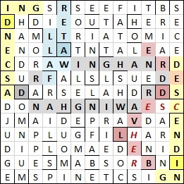But for me this was a excellent puzzle somewhat spoiled by Escher’s name appearing in two parts. The “framing” business felt like a cop-out, even if it wasn’t, and just added an extra layer of unnecessary confusion. It can’t be that hard to hide a 6-letter name in the grid, and whatever thematic reason Nimrod used to break the name up is not strong enough to justify that uncertain feeling of “is that really it, or should I carry on looking?”