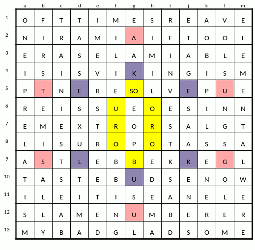 8. John Lowe @5: I agree that kenmac hasn’t shown the double letters correctly, but I don’t think this platform has the flexibility for that. I expect Nimrod to get it right when Puzzle 1782 appears.
