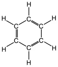 Now, I remember learning about the benzene ring in school but that was a long time ago and I’ve pretty much forgotten everything I ever knew about. I guess the main thing I remember is that it’s made up of H (hydrogen) and C (carbon) atoms and I’d already established that there are five letters that don’t appear in the grid. They are: C, H, J, Q and Z. I imagine that including J, Q and Z in the grid proved to be impossible. The chemical formula for benzene is C6H6 and is usually represented as shown here: