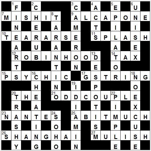 7 | MISHIT | UK security service crap – was way off target (6) M.I. (Military Intelligence – that famous oxymoron) SHIT (crap) |