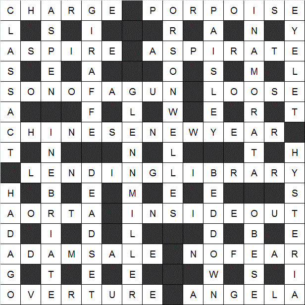 This had all the hallmarks of an Everyman – a few relatively quick gets (for me anyway) – OBESE, LOOSE, CHARGE, AORTA – to get a foothold; some real names – usually not too modern, as here with GLENN MILLER and ORSON WELLES, who was nicely misdirected towards Peter Sellers! – and a couple of &lit-ish/cryptic definitions – LENDING LIBRARY and CHINESE NEW YEAR. And a little sting in the tail – again for me – was my LOI with ASPIRATE, which took a while to parse, even though there weren’t too many candidates to fit the crossing letters… A wonderful image of a French pirate dropping his aitches ensued – ‘Aaargh me ‘earties – Allo Allo – leesten carefully, I weel parse this only wance”…