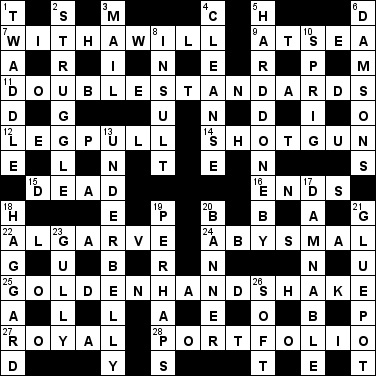 25 GOLDEN HANDSHAKE Midas-like grip usually acquired by the fired top-level manager? (6,9)