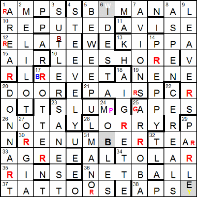 I pretty much worked my way down from top to bottom, not because I was being particularly logical, but because I needed help from crossing entries with most clues. Moreover, don’t think that it was quick top to bottom — I think this one took me the best part of an afternoon (Tuesday if memory serves).