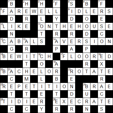 However, I enjoyed the puzzle, particularly FAREWELL (do hope Rufus is not thinking of retiring), IDLERS, BACHELOR, BADINAGE, FLYTRAP and COLLIERY.
