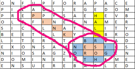 The extra letters in the across clues became obvious first marginally before I had all of the extra letters