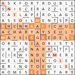 I had a lot of time on my hands at the weekend, and would have welcomed a tougher challenge. Nothing particularly tricky here … it was a puzzle I would have welcomed and been thankful for as a less experienced solver, so no adverse comments from me. Thanks go to Hieroglyph – see you again.