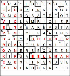 | 14 | VIOLA | E | Ravishing, but can begin to get lost? VIOLATING (ravishing) – TIN (can) – G (begin to Get) |