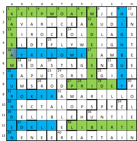 Thanks to Kruger for the great puzzle and kenmac for the blog once again.