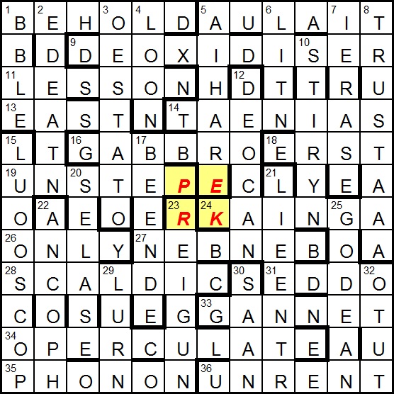 This week, we had a pair of letters being dropped from every across clue, which “represented the theme, no longer produced”. This “unavailability” was reflected in consistent removals from all down answers. Luckily lengths in brackets referred to answer lengths, and they were all 4 letters longer than their entry. Four cells would need highlighting at the end.