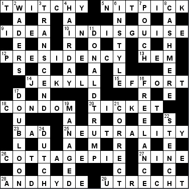 14/28 | JEKYLL AND HYDE | Aspects of a literary body minded to be contrary (6,3,4) I suppose this is a Double Def. but surely both defs arise from the same source |