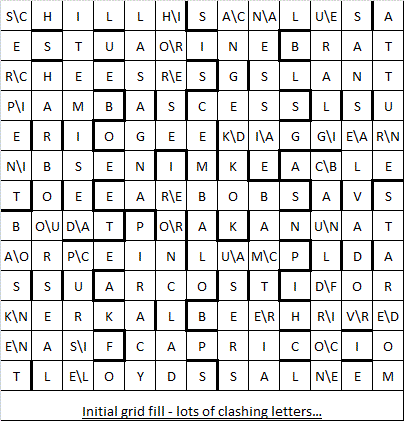 Sure enough, there seemed to be a few clashes here and there as I gradually made some headway with the cold solving. And as more clashes became apparent they seemed to be concentrated on particular entries, so it looked like substitutions rather than, say, resolving clashes to make a shape or find a quotation.
