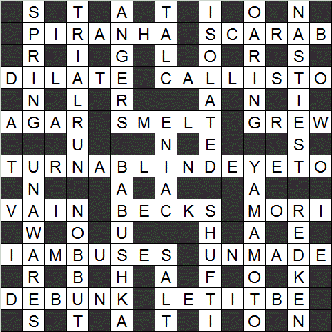 Across the top, middle and bottom rows we have ‘STATION TO STATION’ – an album by DAVID BOWIE, who is down the outer columns – presumably the puzzle was composed as Monk’s tribute after DB’s recent demise. I have to admit to not being particularly familiar with this album, so there may be other thematic material in the clues/solutions?…