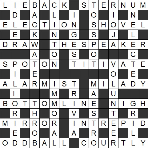 But, oooerr missus…straight from the off we have to ‘lie back and think of England’ (1A), then find a ‘breast supporter’ (5A) and are then treated to the notion that the Sun’s Page 3 might be making a comeback (14A). And I don’t even want to spend too long thinking about The Speaker being ‘one who climaxes when placed behind the Tory leader’, let alone the mental image created by 19D!