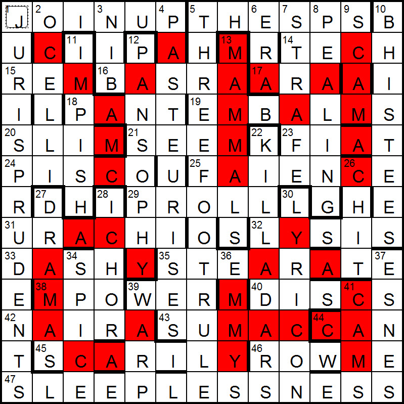I got a few acrosses and downs on the first pass through, but not nearly enough acrosses to get even a hint of the message. Indeed it was quite late on before I was able to home in on the message, although it became obvious fairly early on that the last word was going to be LETTERS.