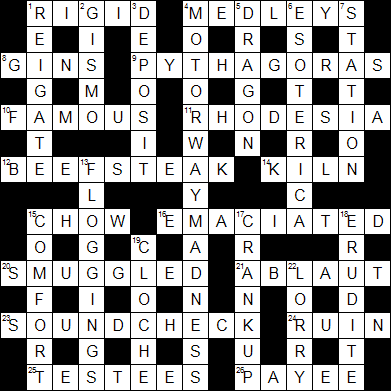 Finished in the SW corner with TESTEES (where I had to suppress a laugh), SOUNDCHECK (a not so obvious cryptic definition) and BEEFSTEAK (not a commonly used term here) as the last few in.