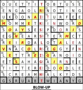 Bizarre! I looked at the solution earlier, mainly to see who had won… not I, for obvious reasons. I didn’t notice the omission but will advise the Ed immediately. (Trust me, it is BLOW-UP.)