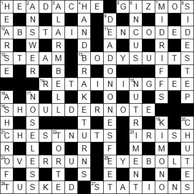 Finished in the SW corner with the actress, CHESTNUTS (which was also a very good clue) and the unusual NOSELESS as the last one in.
