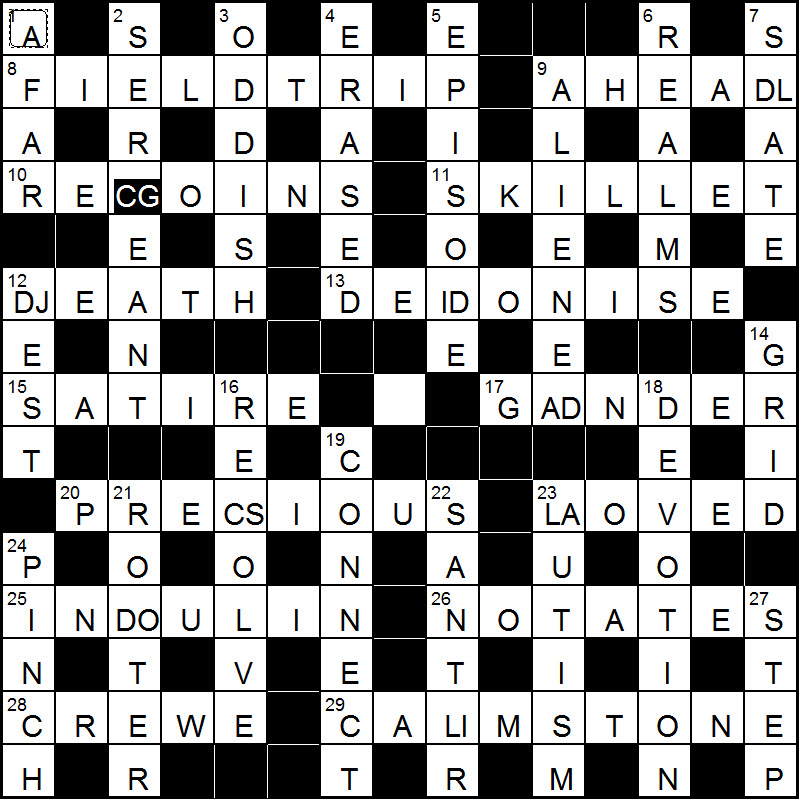 I meant to add to my initial comment last night that I found entering the solution online at the Guardian almost as taxing as doing the puzzle. I had to check twice I had the correctly changed letters and that the letter count was accurate. I almost entered CAULMSTONE, which would have scuppered me. It is incredible the site still cannot go back to the full interactive grid, and that the crossword editor, yet again, failed to spot an error. Surely he could and should have helped QAOS notice the boob with 24D. What exactly does he do? As I mentioned earlier this clue was not my favourite. In retrospect part of the problem was me trying to remove NOX [as Number 10] from Monoxide, for far too long. It is incredible how you cannot shake off bad ideas more easily.
