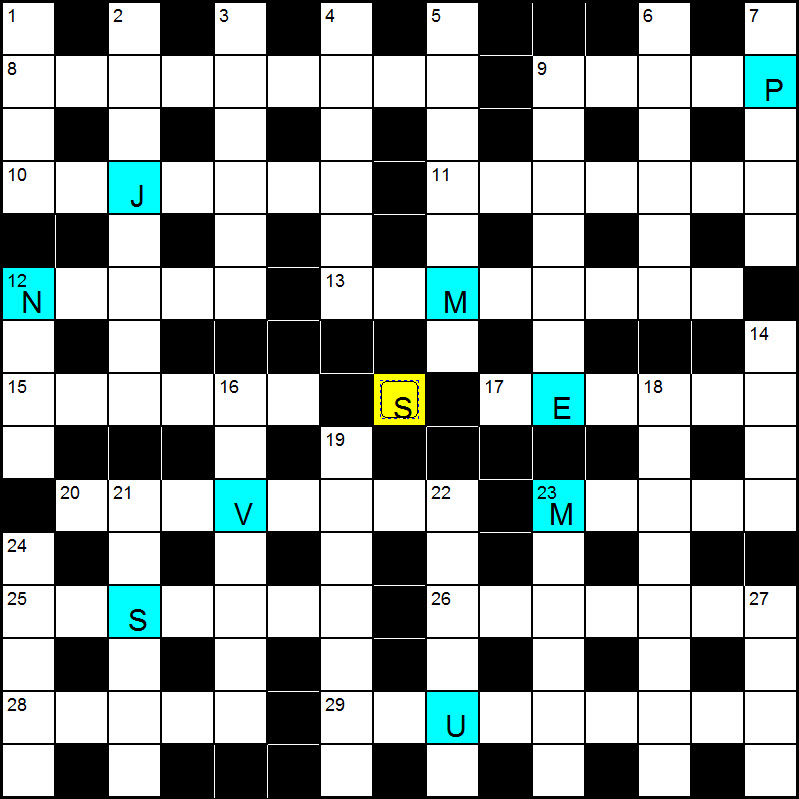 There was a fairly short preamble – Nine letter clashes between across and down solutions are to be resolved, using a consistent formula, creating 18 valid new words. These nine letters have something in common, which will indicate the letter to be entered in the central square of the grid.