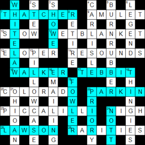 I guessed WALKER before I had the theme, but hadn’t actually heard of Thatcher’s, so it wasn’t much help. It was when I got LAWSON the game was up and I parsed THATCHER.