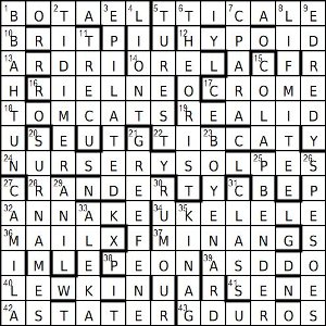 | 18 | TOMCATS | 22’s mates in contact with married men (7) TO (in contact with) + M (married) + CATS (men) |