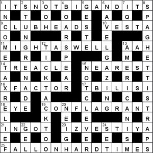 There must be a few bits of wordplay I haven’t properly parsed (17A Tbilisi I’m looking at you)
