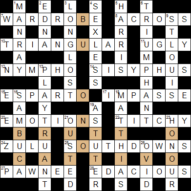 For 26d, take DIVOrced reversed (upset). Finished this but had to check some. Didn’t know MAN RAY, EDACIOUS, SOUTHDOWNS (I took SOUTHS as the points) or HARRIS as southern part of island. There’s a typo in blog for 1d, MAN not MAT.