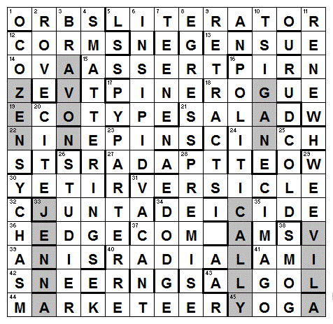 | 45 | First signs of over-the-top grants exercising system (4) | YOGA | First letters of O(ver-the-top) + G(rants) |