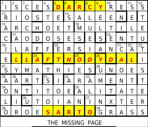 A fairly straightforward puzzle from Kruger this week with Hancock’s Half Hour being revealed by the extra letters in the wordplay for the across clues. I hadn’t heard of this particular episode. The most popular was probably The Blood Donor, but a quick scan of the Wikipedia web page soon gave The Missing Page as the required episode. This hinted at the missing Ps that were dropped from all answers before entry in the grid.