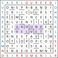 Most of the grid fill I found to be very, very slow. But then, yes, I noticed GROUND and VELVET appearing in the grid, and that cleared things up very nicely thank you. Prior to that though I’d ground to a halt and was on the verge of throwing in the towel for the first time in a while. So somewhat harder than average for me.