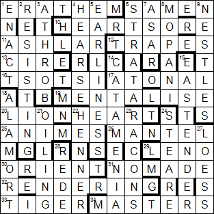 | 10 | HEARTSORE | As craftsmen they are trained in tally, well qualified (9) |