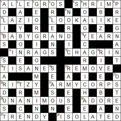 Thanks, Julius and PeeDee. Loved all the musical layers of this puzzle, besides the Carmichael songs themselves. ALLEGROS, ADORE, use of Baez in 2d and BABY GRAND (needed blog to parse this). And does LAZYBONES combine with RIVERBOAT to allude to “Up a Lazy River”?