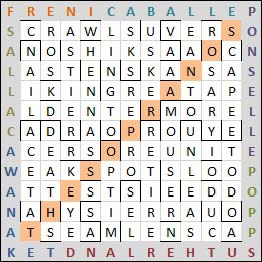 Armed with the complete set of ‘identified letters’ it was possible to back out some of the remaining misprints, and of course I was also helped by having a completed diagonal to polish off most of that troublesome top right corner. My knowledge of famous sopranos is limited, but I saw that Montserrat CABALLÉ would fit in the top row. Then there was Joan SUTHERLAND along the bottom, Kiri TE KANAWA bending round the lower left corner, and Maria CALLAS heading up to the top left. From the remaining unchecked perimeter letters I guessed FRENI, confirmed on-line, which just left PONSELLE and POPP to identify & check. I assume that the title refers to the feature that sopranos have the highest female singing voice.