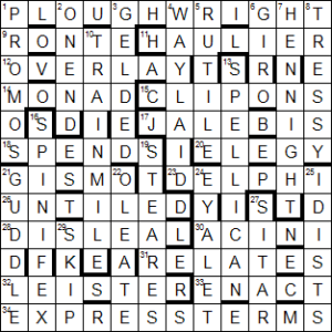 I enjoy a good Spoonerism in a clue, but when you have a puzzle full of them there are bound to be a few feeble ones. I’m not sure DELPHI works as it surely rhymes with SELFIE, which doesn’t fit vocally with DEE FELL. Of course Spoonerisms are meant to be groanworthy puns and it’s silly to be too po-faced about them, but the question is how much latitude can be allowed before the attraction wears off. I quite enjoyed this and admire Azed’s perseverance in finding a Spoonerism for each clue, but TBH I’d had enough by the end.
