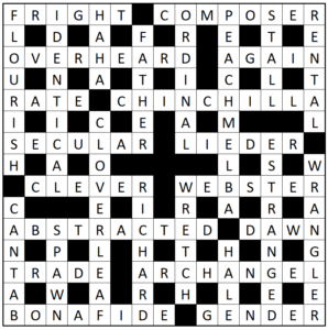 While solving the clues was not too hard (though I couldn’t parse ORDINAL (now fixed – thanks Jon Delfin@1)) … making up a grid was rather more tricksy!