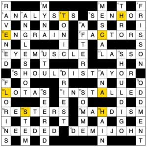 My only slight criticism (if you can call it that) is that the enumeration of 17,18 gave the game away a bit too quickly. The song title jumped out at me with just a few crossers in place. If it had just been specified as “22, seven words” it would have been more of a challenge.