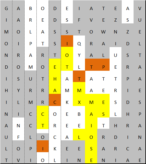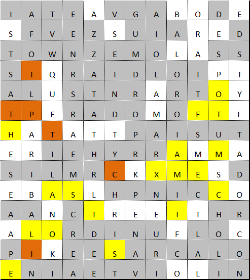 This leaves me wondering what the orange squares are all about but having spent so much time on the puzzle and the blog, I’m running out of time to investigate further.