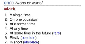For “once” I imagined a McCarthyist “were you once a communist?”