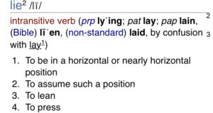 For those of you who were unsure of once and lie here are the relevant entries in Chambers: