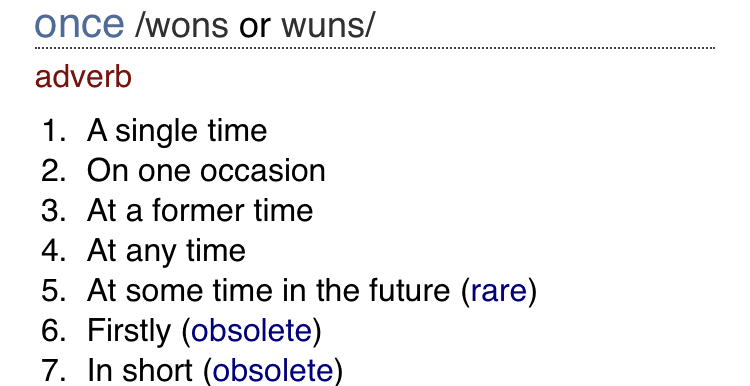 For “once” I imagined a McCarthyist “were you once a communist?”