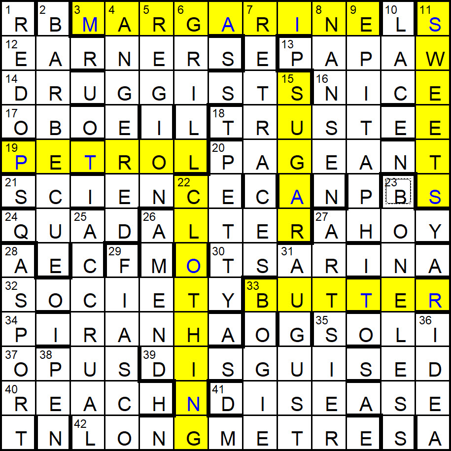 33a just had to be BUTTER but refused to yield until we spotted the potential MARGARINE across the top.
