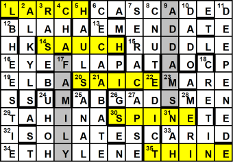 … and identifying all the corrections to the misprinted clues.  These give TED CASSIDY, who played both LURCH and THING (except when they appeared together).  The ladder is below, with the completed grid, highlighted for clarity only.