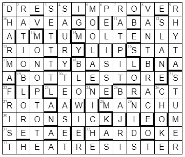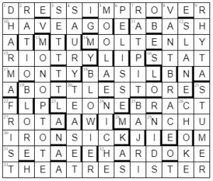 BOTTLES (preserves) TORE (rent) – Australian term, from Perth perhaps | ||