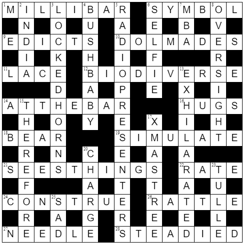 We liked MILLIBAR, BIODIVERSE and CONSTRUE.