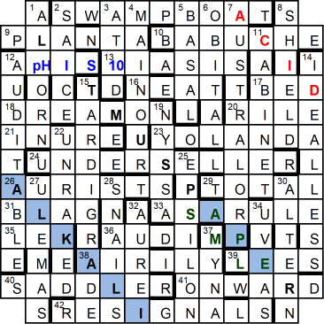 8. Hi Liz. No, you didn’t imagine it. I have just amended the grid and was about to reply to you (with a comment that started with, “Oh pH …!”). No idea what caused that slip, I’ve no excuse.