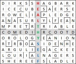The ‘A’ of PHYSICIAN was hard to find. Like you, HG, I thought ‘shout’ had to become ‘snout’, yielding an incorrect letter, but a friend kindly pointed out to me that ‘shoat’ is a word (meaning a pig). And ALTO was also my last one to parse, using the unfamiliar ‘loto’.