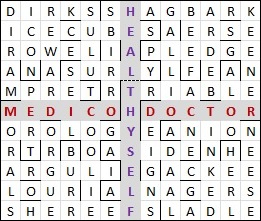 COME?I was enough to suggest MEDICO, and R?O??? was then enough, in the circumstances, to suggest DOCTOR, which helped with some crossing words.