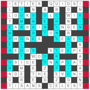 This is only the second Genius puzzle I have attempted [my first, many months ago, being one by Soup that had no vowels in the clues or answers]. A study of the preamble and of the setter’s name indicated another tough challenge ahead, but a fair one that would ultimately be solvable.