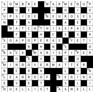 In the end, this crossword – which has some nice touches too – took me a Lot (yes, capital L) more time than Pan’s in the actual paper.